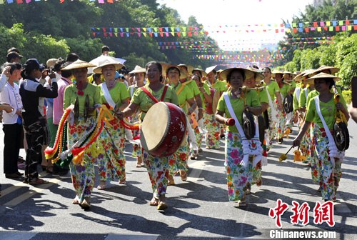10月2日,瑞丽少数民族盛装街头巡游庆祝胞波节。中新社发 任东 摄