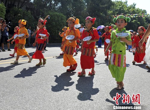 10月2日,瑞丽少数民族盛装街头巡游庆祝胞波节。中新社发 任东 摄