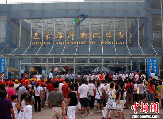 游客扎堆游览蓬莱海洋极地世界。姜山 摄