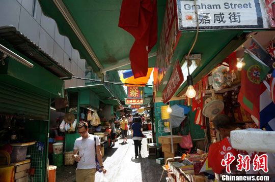 街上沿途有不少街边卖湿货的小商贩,包括卖鲜鱼虾蟹的、粮油杂货,有新鲜的,也有冻肉,保留着过去香港人的生活面貌及纯朴的一面。中新社发 洪少葵 摄