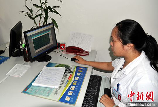 10月9日,福建宁德人民医院医生通过专用网络接收周边乡村卫生室村医通过“海云工程”终端上传的患者心电图检测数据。中新社发 孙自法 摄