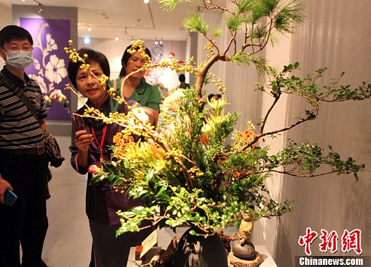 10月9日,2013中华插花艺术展在位于台北市南海路的“历史博物馆”正式开展,吸引民众参观。中新社发 陈立宇 摄