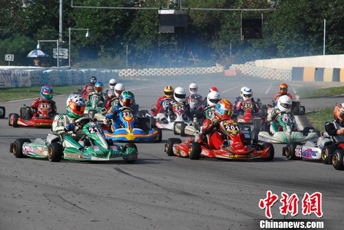 10月13日,由中国-澳门汽车总会主办、澳门特区政府体育发展局及旅游局协办的“2013澳门国际格兰披治小型赛车锦标赛”完成数场决赛后落下帷幕。图为决赛现场。中新社发 毕永光 摄