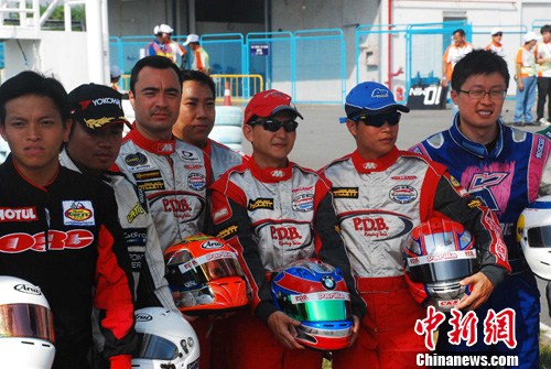 10月13日,由中国-澳门汽车总会主办、澳门特区政府体育发展局及旅游局协办的“2013澳门国际格兰披治小型赛车锦标赛”完成数场决赛后落下帷幕。图为车手整装待发。中新社发 毕永光 摄