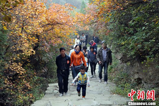 10月13日,山西太原龙山风景区举行了“我陪爸妈登龙山”活动。据了解,本次活动的主题为“登高 祈福 尽孝”,倡导子女和老人一起参与,重阳节当天登高望远。此次活动共吸引了99位老人及其子女参加,总人数超过200人。中新社发 张云 摄