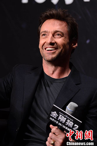 10月14日,著名好莱坞明星休·杰克曼现身北京,与中国媒体分享拍摄《金刚狼2》的心路历程。中新社发 李学仕 摄