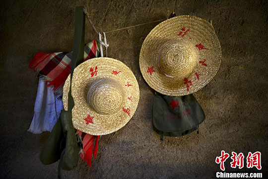 地窝子的墙上挂着军垦战士使用过的草帽,背包。刘新 摄