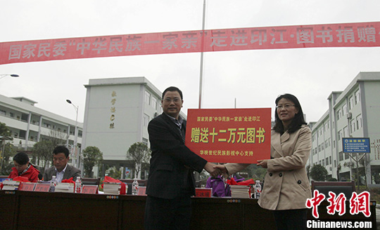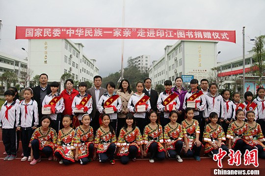 10月18日,国家民族事务委员会在贵州铜仁印江土家族苗族自治县实验学校举办“中华民族一家亲”走进印江图书捐赠仪式。中新社发 陈小愿 摄