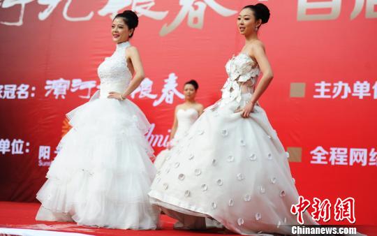 10月18日,入围首届兰州“魅力新娘”的30名佳丽在兰州东方红广场从气质美、形象美、心灵美三个方面展开走秀大比拼;新娘们精彩的表演吸引了路人纷纷驻足。杨艳敏 摄