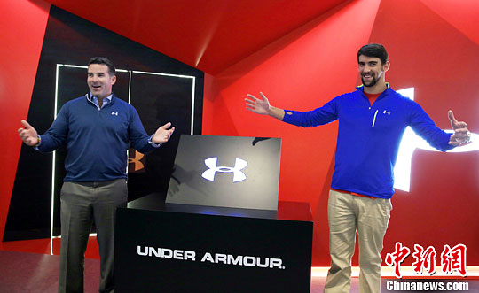 10月18日,泳坛名将迈克尔·菲尔普斯(MichaelPhelps)现身上海,为UNDERARMOUR全球首家运动家体验店开业揭幕。菲尔普斯的露面,引来众多粉丝围观,而其却毫无架子,频频与粉丝互动,趣味屡现。中新社发 潘索菲 摄