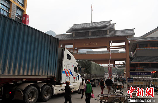 10月29日,在“中国南大门”广西凭祥市浦寨边贸点,满载货物的中越大货车往来如梭。中新社发 杨志雄 摄