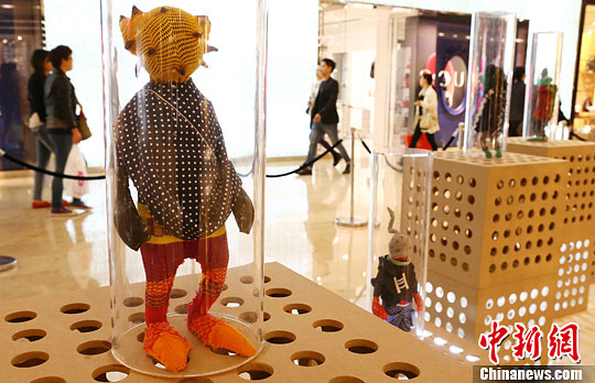 10月30日,二十多件融合了雕塑艺术、时装艺术与玩偶艺术的艺术公仔玩偶亮相在南京德基广场举办的“潮流公仔波点艺术展”上,展出的玩偶通过艺术家大D的创意设计,呈现出具有生命感的潮流艺术品。中新社发 泱波 摄