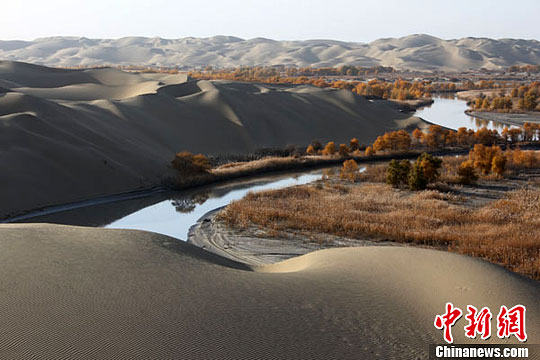 新疆塔克拉玛干沙漠深秋尽现绚丽风光