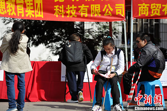 11月5日,36家企业在昆明市五华区残联举行专场招聘会,为众多残疾人提供就业机会。中新社发 刘冉阳 摄