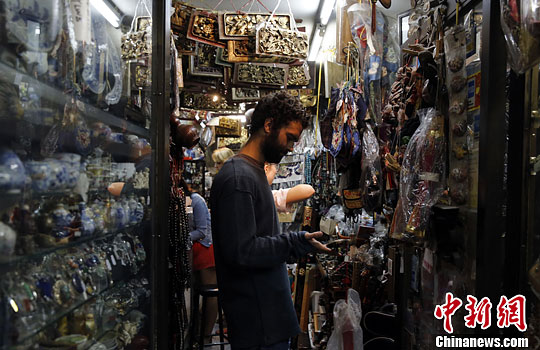 11月初,外国游客在香港荷李活道上选购中国古董。这条香港开埠后兴建的第一条街道,现已成为买卖古董的聚集地,吸引了不少收藏一族前来淘宝。中新社发 汤彦俊 摄