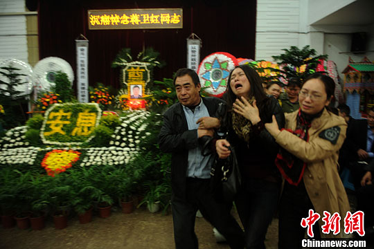 11月5日,亲人来到殡仪馆哀悼蒋卫红英勇殉职。图为蒋卫红的妹妹前来殡仪馆哀悼。陈超 摄