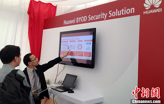 11月5日,中国通信业巨头华为在菲律宾首都大马尼拉地区塔义格市启动为期9天的“ICT(信息通信技术)解决方案嘉年华巡展”,助力菲国企业信息化进程。图为华为专家在活动现场向客户介绍创新产品。中新社发 张明 摄