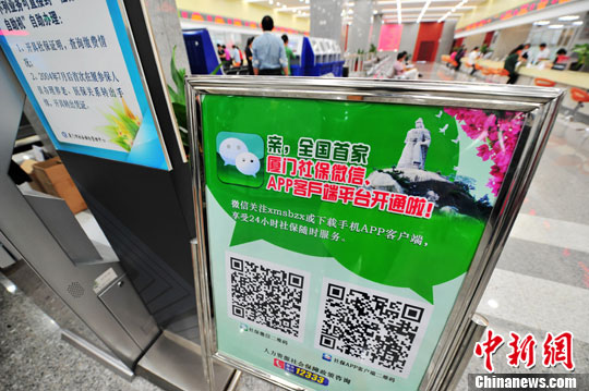 11月6日,厦门行政服务中心的厦门社保微信公众服务平台宣传栏。中新社发 张斌 摄