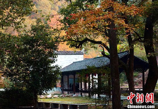 11月6日,江西省婺源县赋春镇源头村红叶尽染秋色如画,吸引着不少游客来赏秋摄影。王国红 摄
