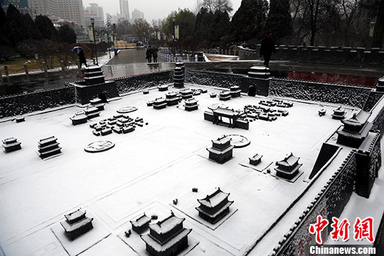 11月13日,市民从西宁古城的微缩景观旁经过。中新社发 赵凛松 摄