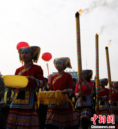 11月18日,来自湘粤桂三省区5个瑶族自治县、省内外56个瑶族乡的近千名瑶族代表,齐聚”神州瑶都”湖南江华瑶族自治县,共同祭祀他们的祖先“盘王”。图为敬香。唐小晴 摄