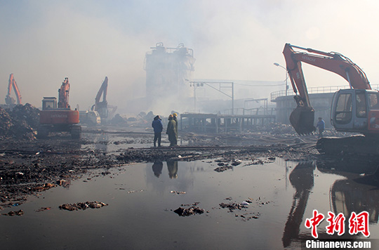 11月18日,河北滦南一造纸厂现场仍有大量烟雾弥漫在空中。中新社发 白云水 摄