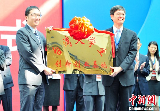 11月18日,福建平潭综合实验区举行“台湾大学生创新创业基地”授牌仪式。中新社发 张斌 摄