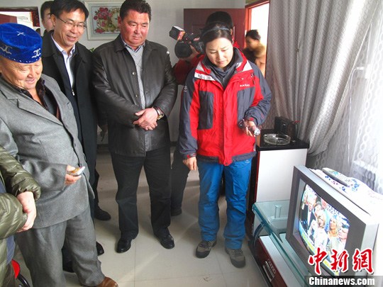 图为村民们收看电视频道。中新社发 闫文陆 摄