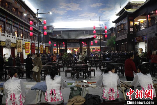 11月18日,展现开封在北宋时期昌盛繁华景象的“小宋城”开门迎宾,吸引了不少游客。中新社发 王中举 摄