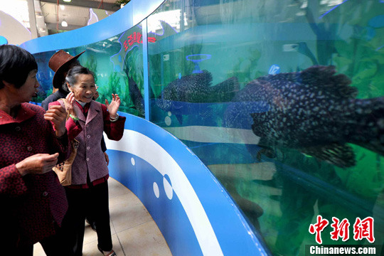 漳州东南花都的巨型石斑鱼吸引参观游客。中新社发 王东明 摄