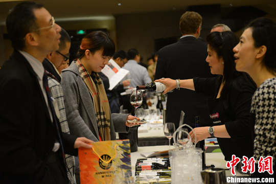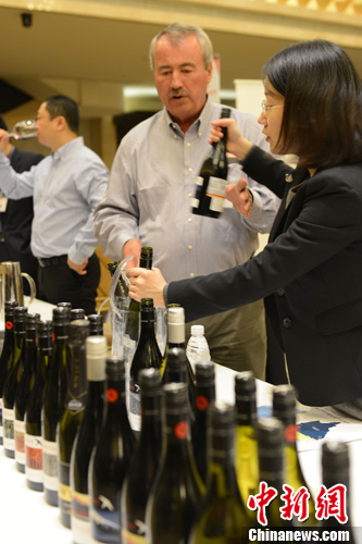 11月18日,成都举办“2013品鉴澳大利亚葡萄酒”推介会,30多家澳大利亚酒庄组团来到现场,向中国消费者做推介。图为品鉴会现场。中新社发 张浪 摄