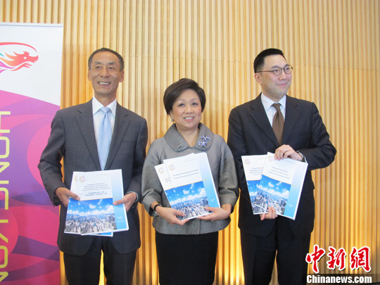 今年1月成立的香港金融发展局,经过多个月来酝酿,18日发表首批共六份报告,提出人民币业务,资产管理中心等多方面提出建议,以巩固香港金融中心地位。 金融发展局主席史美伦(中)18日出席新闻发布会。中新社发 黄旖琦 摄