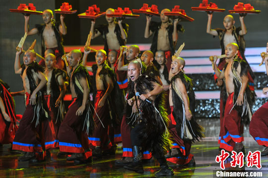 11月18日,第十三届亚洲艺术节在昆明开幕,来自中国、新加坡、马来西亚、越南、朝鲜等亚洲12国的艺术家同台献艺,尽展亚洲民族风韵。图为云南原生态歌舞《跳菜》。中新社发 任东 摄