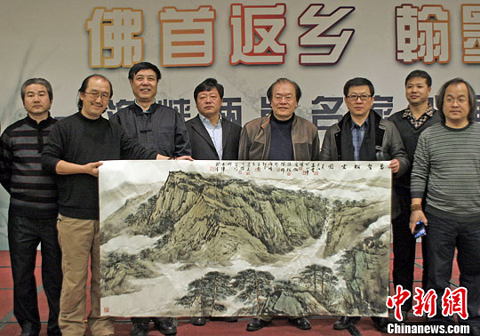 11月19日,由天津市人民政府台湾事务办公室和天津武清区人民政府共同举办的“佛手返乡 翰墨寄情”海峡两岸名家书画创作笔会在武清区举行。17位海峡两岸书画名家受邀参加了此次创作笔会。中新社发 佟郁 摄