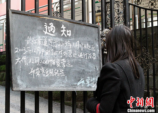 11月19日,重庆长江索道停运。长江索道于当日开始,进行电气系统更新换代,预计将持续一个月时间,12月20日才能更新完毕,重新开放。图为重庆长江索道大门紧锁、停止营运。中新社发 周毅 摄