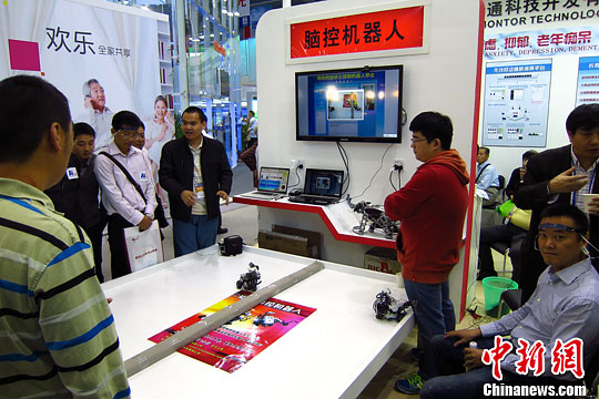 深圳高交会:民众体验脑控机器人