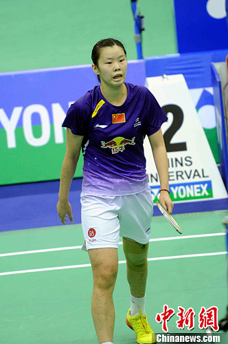 11月19日,中国名将李雪芮以2比1战胜对手。香港公开羽毛球锦标赛当日至24日在红磡香港体育馆上演。中新社发 谭达明 摄