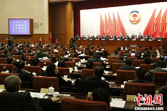 11月20日,政协十二届全国委员会常务委员会第三次会议在北京闭幕,中共中央政治局常委、全国政协主席俞正声出席会议并发表讲话。中新社发 盛佳鹏 摄