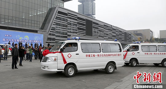 加拿大侨领陈沙立向西南贫困县乡捐赠救护车(2)