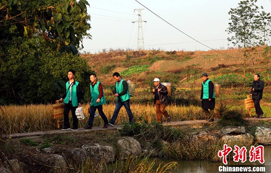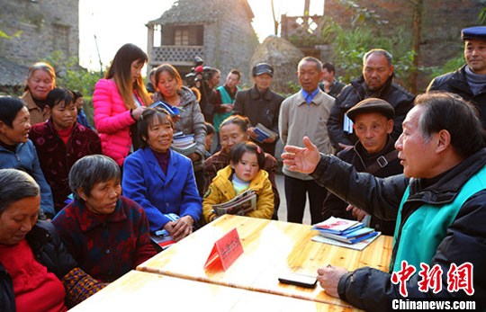 12月2日,四川省华蓥市“背篼法律图书馆”的管理员,背着图书,带着简易书桌,走村串户向冬闲的村民宣传普及法律知识。邱海鹰 摄
