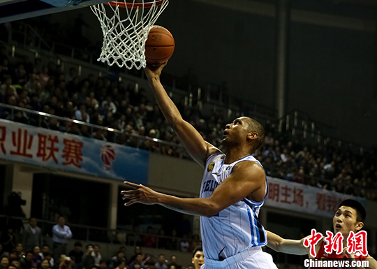 12月3日,北京金隅队球员莫里斯在比赛中。当日,在2013-2014赛季中国男子篮球职业联赛(CBA)第9轮比赛中,北京金隅队主场以119比114战胜佛山农商银行队。中新社发 熊然 摄