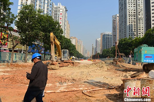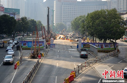 12月4日,厦门嘉禾路上进行地铁的前期施工。中新社发 吕明 摄