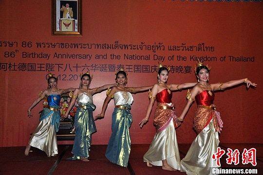 图为泰国在广西的留学生歌舞庆祝泰国国王生日和泰国国庆。中新社发 刘万强 摄