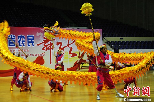 当日,福建省首届农民舞龙比赛在福州体育馆开幕,来自全省9个地市的9支代表队共100余人参加比赛。本次比赛分为规定套路比赛、自选套路比赛和竞速舞龙比赛三个项目。据了解,各地代表队基本上是以舞龙基础较好的村为单位、以农民为主体,进行专门培训后再参加比赛。