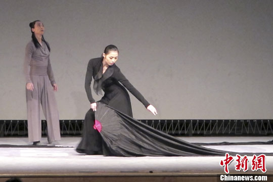12月11日,香港舞蹈家用长飘绢扇舞展现《兰亭集序》的端庄流丽。中新社发 叶小刚 摄