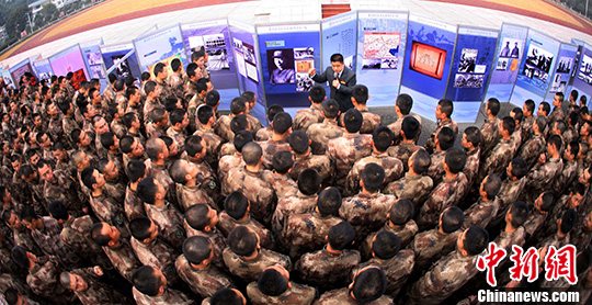 1月7日,聂荣臻元帅陈列馆组织社会主义核心价值观宣讲小组走进解放军第十三集团军驻川某师,开展“核心价值观新年进军营”活动。中新社发 高效文 摄