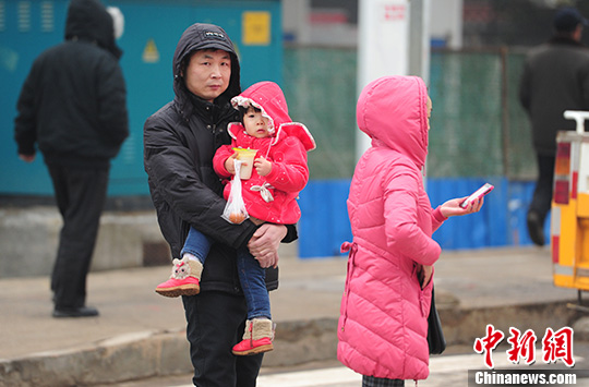1月8日,恰逢农历腊八节,长沙市民将自己包裹得十分厚实。当日,受较强冷空气继续影响,中国18省迎来大幅降温,中东部大部地区气温将下降4至8℃,局地降温可达10至12℃。中新社发 杨华峰 摄