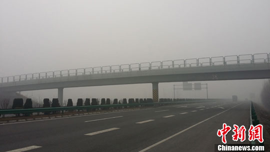 1月9日,济广高速阜阳段入口封闭,能见度不足10米。中新社发 张娅子 摄