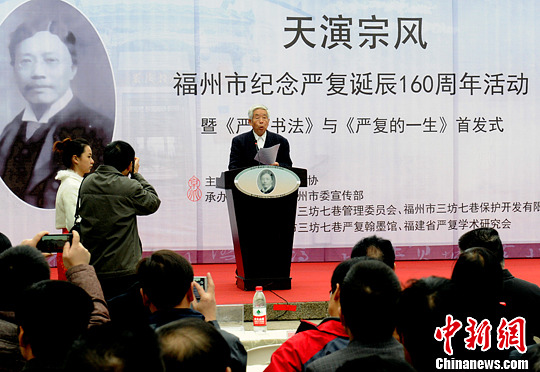 1月9日,严复诞辰160周年纪念活动在福州三坊七巷光禄公园举行。近百位的专家学者、严复后裔等参加了纪念活动。中新社发 刘可耕 摄