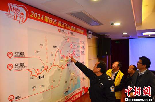 1月13日广东肇庆春运“暖流行动”新闻发布会上消息,与往年不同,备受关注的“10万铁流”过境“暖流行动”今年上升为广东广西联手“迎送”,并于6日农历年腊月十六在全市8个县市区的境内321国道及263、349省道启动,设14个大型服务站,其中春节前设8个,春节后设6个,收费站设专门通道,并实施免费通行。肇庆市交警支队长甘水波称,肇庆警方精心呵护每一位生命,并呼吁佳节临近,途经的摩托大军要珍惜生命,珍惜与家人团圆的时刻,尽可能选择乘坐“铁包人”的交通工具回乡过年。